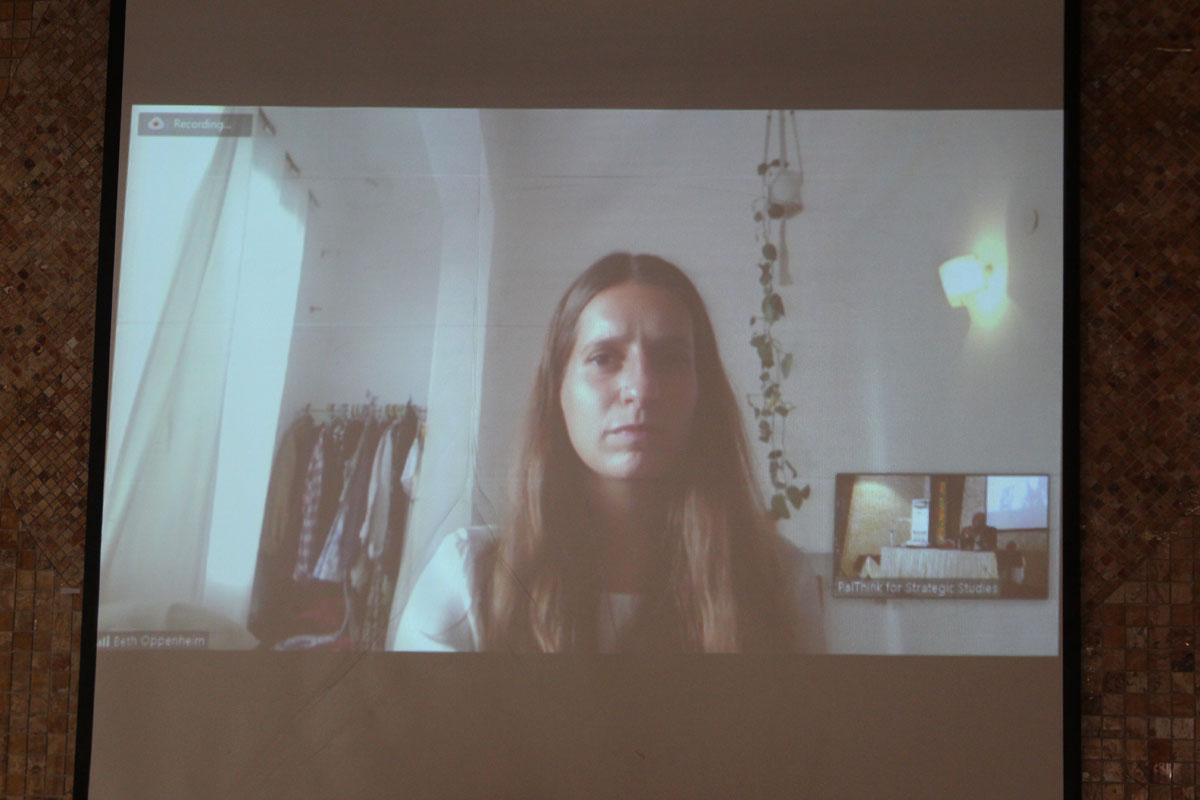 وافتتح الجلسة مدير مؤسسة “بال ثينك” أ. عمر شعبان بالترحيب بضيفة الجلسة وبالحضور الكريم، وقال إن مؤسسة بال ثينك للدراسات الاستراتيجية وهي مؤسسة تفاكر وبحث فلسطينية، تواصل عملها في مناقشة القضايا السياسية التي تعني الشأن الفلسطيني والدولي اليوم.