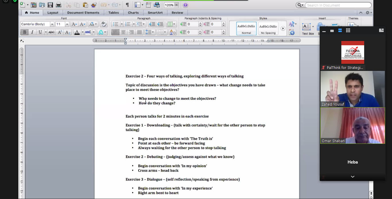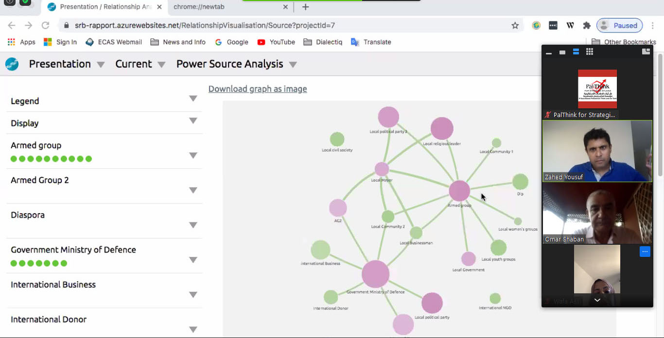 اختتمت بال ثينك للدراسات الاستراتيجية هذا الاسبوع برنامج تدريب افتراضي استمر لمدة خمسة أيام يستهدف قطاع العمل الاهلي الفلسطيني. , وذلك بمشاركة فاعلة من ممثلي عدد من المؤسسات الاهلية الفلسطينية من القدس و قطاع غزة والضفة الغربية. البرنامج يتم بالتعاون مع مؤسسة ديالكتيك الاستشارية الدولية و بتمويل من القنصلية الفرنسية بالقدس . هدف البرنامج إلى تعزيز القوة الجماعية للمجتمع المدني الفلسطيني من خلال تحسين التنسيق بين مؤسساته و مع الجهات الاخرى خاصة الرسمية منها، بما يساعد على وضع استراتيجيات لدعم جهود القطاع الاهلي المنسقة مع الجهود الرسمية و الخاصة لتحقيق التنمية المستدامة. هدف التدريب إلى التحليل العلمي الممنهج لبيئة عمل القطاع الاهلي و استكشاف مجالات التحسين و التأثير بما يؤدي إلى تطوير قدراتها على التفكير الاستراتيجي و تحديد مجالات تداخلها بشكل علمي. هذا التدريب متميز عن غيره من الكثير من برامج التدريب أنه قد تم استخدام أداة رقمية تفاعلية تضمنت سلسلة من ورش العمل التحليلية التشاركية عبر الانترنت اللازمة بهدف تصميم تدخلات ذكية ونابعة من احتياجات السياق الفلسطيني و ليس مفروضة عليه,