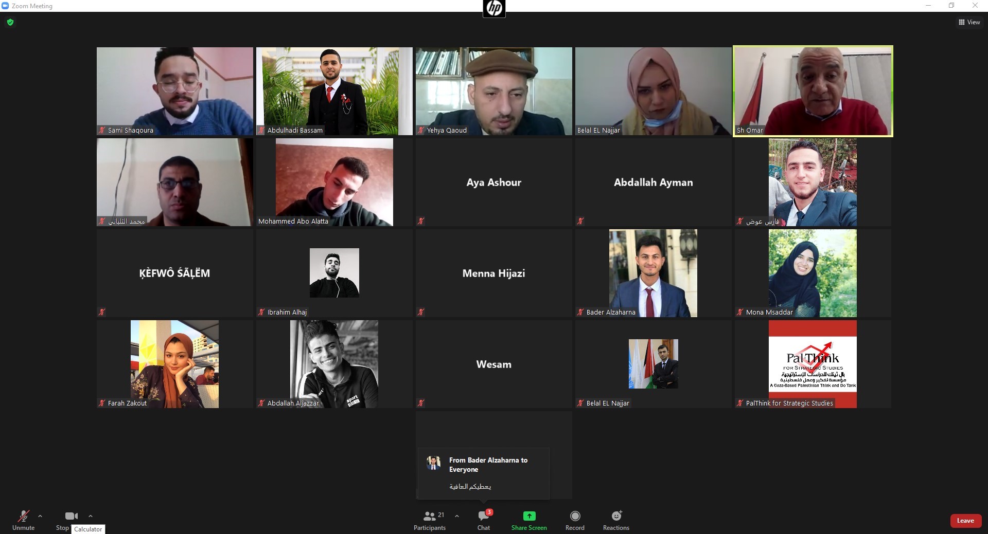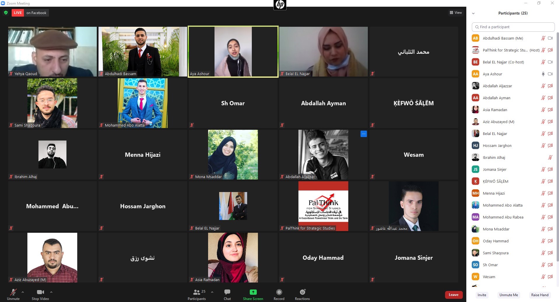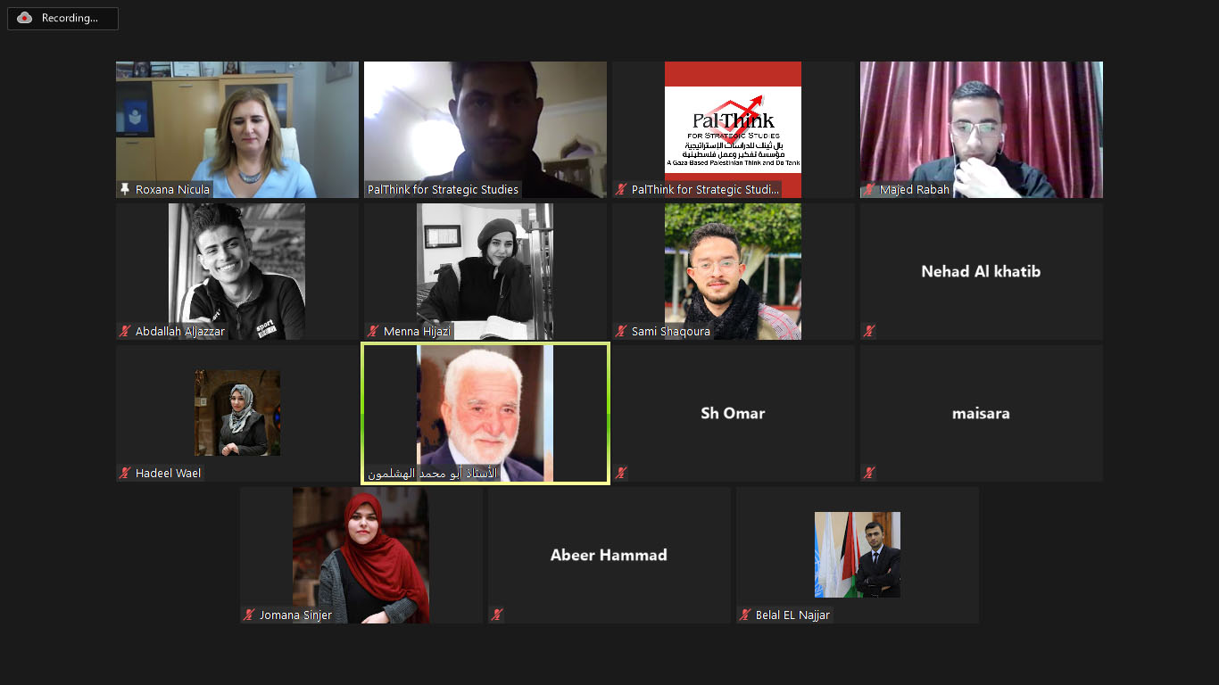نفذ منتدى التثقيف المدني والذي تشرف عليه بال ثينك للدراسات الاستراتيجية لقاءات توعية عبر تطبيق ZOOM تستهدف طلاب وطالبات الجامعات الفلسطينية، ركزت على مواضيع ذات علاقة بقضايا الديمقراطية والمشاركة السياسية في الحالة الفلسطينية.