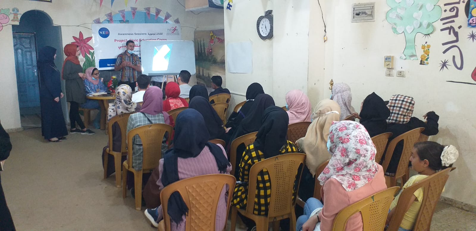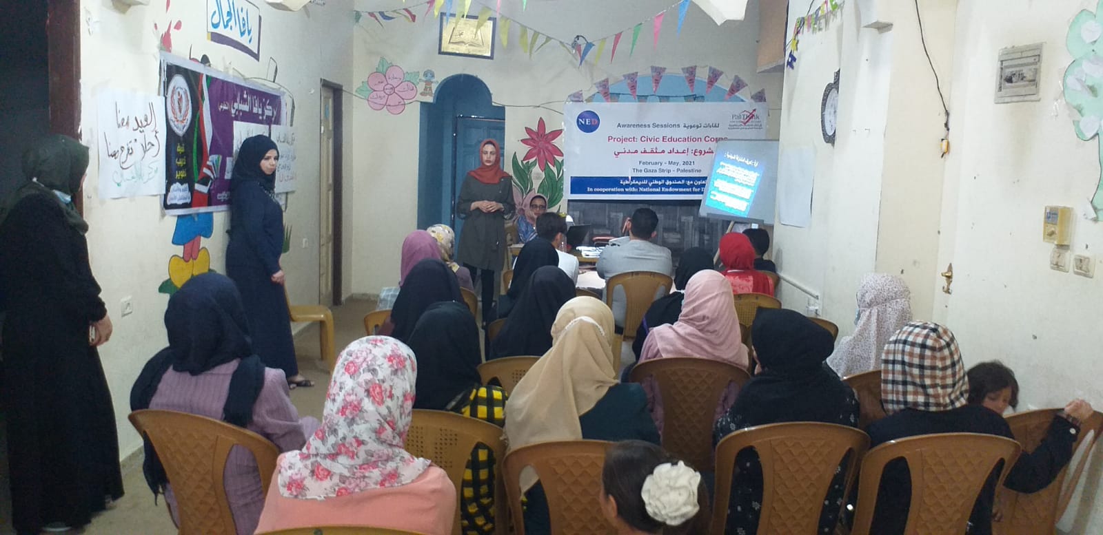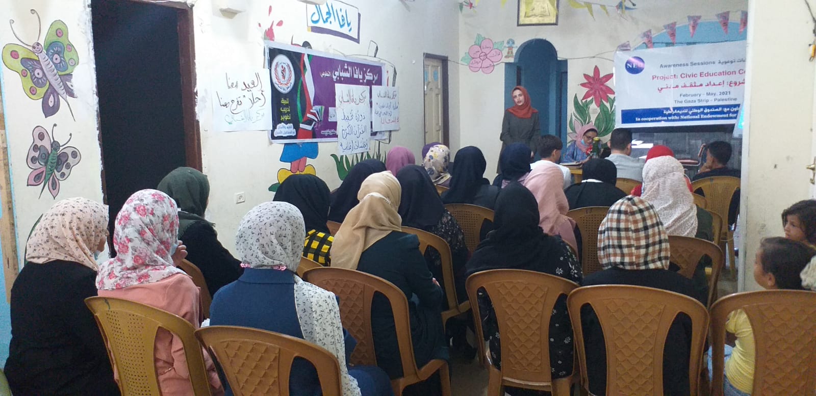 بدورها ادارت اللقاء عضو هيئة التثقيف المدني الطالبة أية أبو حطب والتي تحدثت خلال اللقاء حول مفهوم المشاركة السياسية، ومن ثم بيان أشكال ومستويات المشاركة السياسية وخصائص المشاركة السياسية ودوافعها.