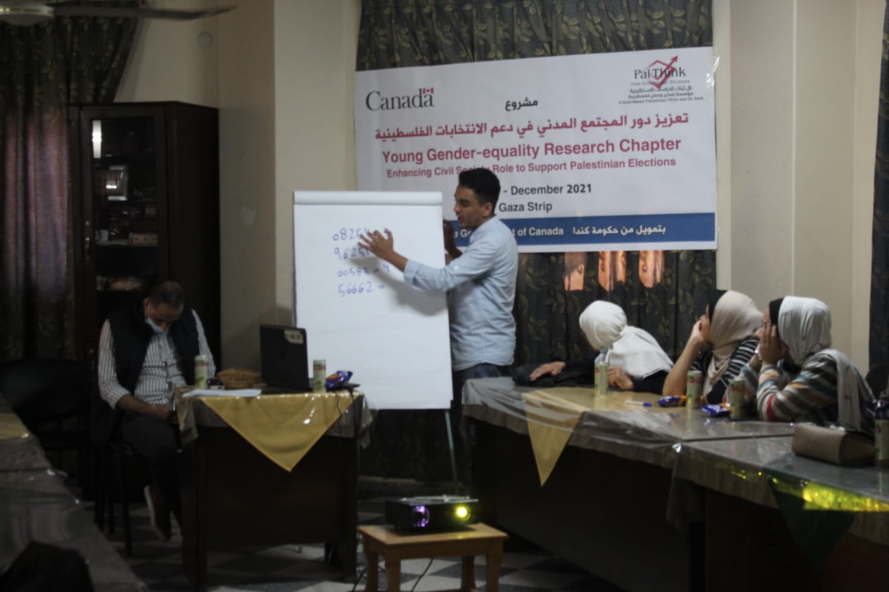 ضمن مشروع “تعزيز دور المجتمع المدني في دعم الانتخابات الفلسطينية”، والذي تنفذه بال ثينك للدراسات الاستراتيجية وبتمويل من حكومة كندا، بدأت بال ثينك بتنفيذ لقاءاتها التوعوية ضمن سلسلة من الأنشطة والفعاليات التي تنفذ خلال المشروع، حيث تم مسبقا تنفيذ برنامج تدريبي مكثف ركز على قضايا الديمقراطية ومهارات الضغط والمناصرة واستهدف مجموعة من طلبة الجامعات والخريجين، والذين بدورهم يشاركون الان في تنفيذ جميع أنشطة المشروع ومنها اللقاءات التوعية التي تهدف الى المساهمة في رفع وعي الشباب والشابات حول الديموقراطية والمشاركة السياسية والمجتمعية وحقوق الانسان والمرأة والمساواة بين الجنسين.