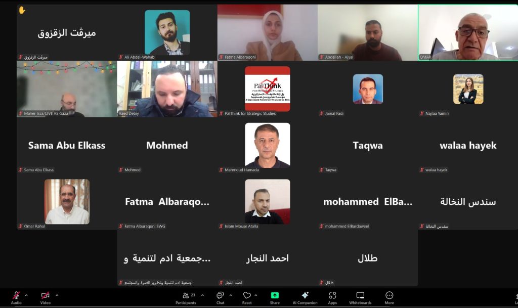 بالشراكة مع 15 مؤسسة أهلية فلسطينية، بال ثينك للدراسات الاستراتيجية تواصل مشروع إستشراف مستقبل النظام السياسي في فلسطين