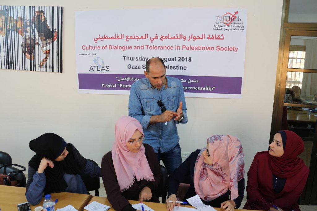 نظمت بال ثينك للدراسات الإستراتيجية محاضرة بعنوان “ثقافة الحوار والتسامح في المجتمع الفلسطيني” بحضور 20 من طلبة وخريجي الجامعات في قطاع غزة من كلا الجنسين ومختلف التخصصات، تأتي هذه المحاضرة في إطار مشروع “تعزيز التسامح وريادة الأعمال”، وهو مشروع أطلقته بال ثينك بالتعاون مع شبكة أطلس –وهي منظمة غير ربحية مقرها الولايات المتحدة الأمريكية-، حيث […]