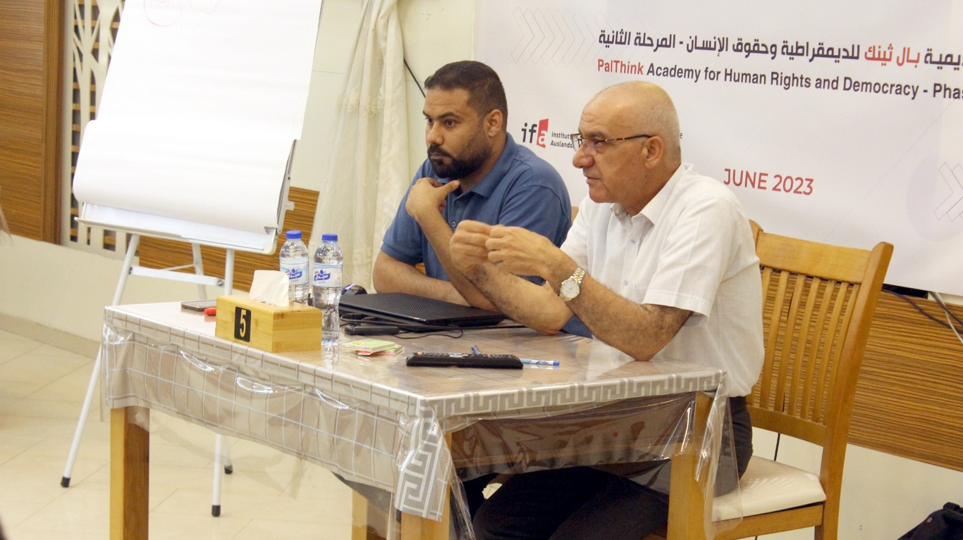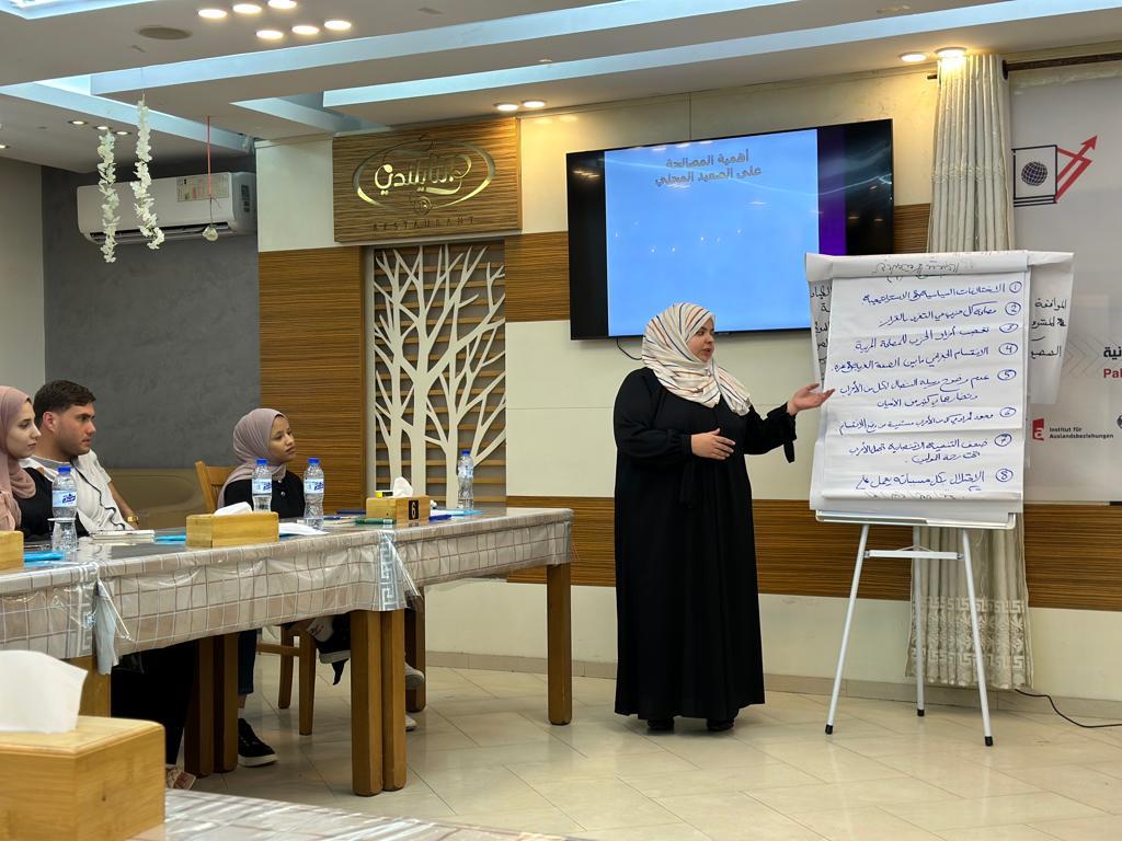 أما المدرب أسامة مرتجى، قدم المفاهيم الأساسية للمصالحة والتفرقة بين المصلحة والمصالحة والمصلحة الحزبية والقومية، حيث التعريف بالمصالحة باعتبارها مصلحة وطنية شاملة وهي أحدي لوازم الانتقال الديمقراطي السليم بعيدًا عن كل الحسابات السياسية الضيقة، وأختتم التدريب بتناول الانتخابات العامة الفلسطينية كمدخل لتحقيق المصالحة الفلسطينية