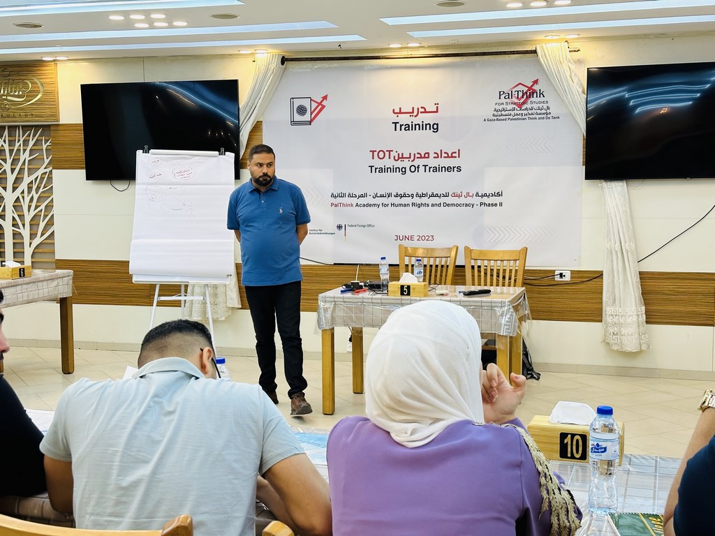 وأفتتح الدورة عمر شعبان، مدير بال ثينك، موضحاً الهدف من الدورة والساعي لتعزيز قدرات مجموعة شبابية من أعضاء الأكاديمية، وإعدادهم كمدربين ومحاضرين في مجال الديمقراطية وحقوق الإنسان، من خلال برنامج تدريبي متكامل يعمل على صقل المتدربين بالحقيبة التدريبية والمهاراتية والمعرفية اللازمة، وبما تشمل العروض التقدمية ومهارات الاتصال والتواصل، وإدارة الجلسات الحوارية. واعتمدت بال ثينك على منهجيات مستحدثة في التدريب متبنيه المعايير الدولية في التدريبات وعقد الجلسات الحوارية والورش التوعوية، بما يضمن تمكين الفئة المستهدفة (25) عضو في أكاديمية بال ثينك للديمقراطية وحقوق الإنسانمن تنفيذ (60) جلسة توعية في مختلف مناطق قطاع غزة. ومن المقرر أن تستمر الدورة التدريبية مدار (10) أيام بواقع (5) ساعات تدريبية لكل يوم.