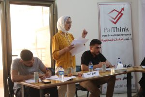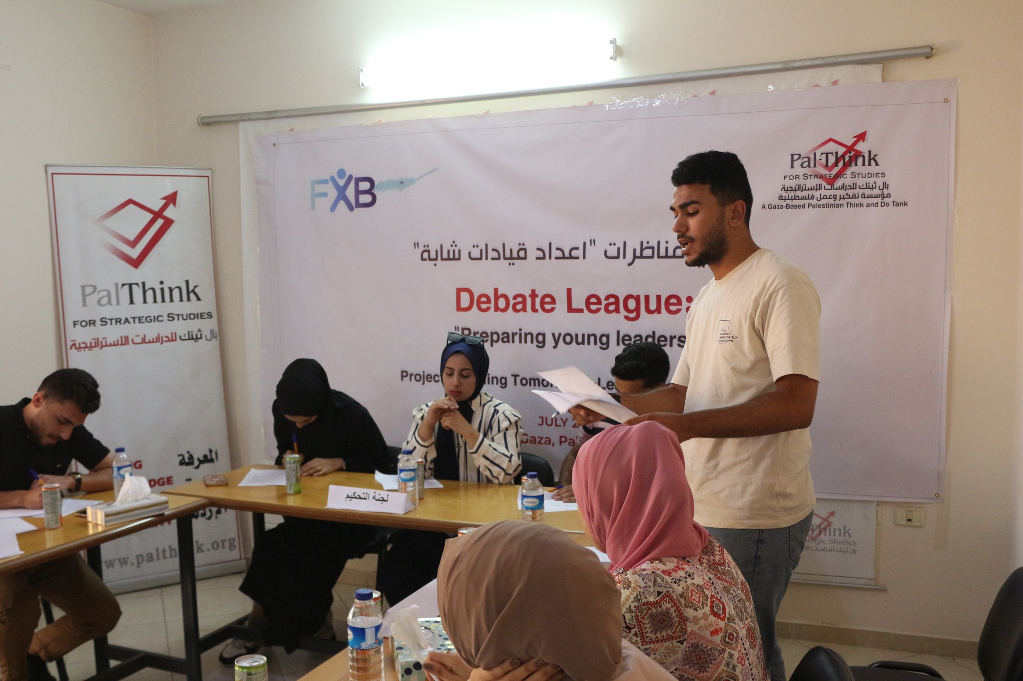 أنهت بال ثينك للدراسات الاستراتيجية دوري مناظرات ” اعداد قيادات شابة” حيث تأهل للنهائي فريقان من أصل 6 فرق ناظرت في يوم سابق على عدة مقولات، وقد ناظر الفريقان اليوم على مقولة ” المؤسسات الاهلية نجحت في حماية الحريات العامة في ضوء الانقسام الفلسطيني”.. وقد شارك أعضاء فريق “قيادات شابة” آية عاشور ، فايق محسن، ومحمد عدوان كفريق مؤيد، بينما شارك كل من أنسام الصيفي، رانيا زهد و عبدالرحمن اسماعيل كفريق معارض..