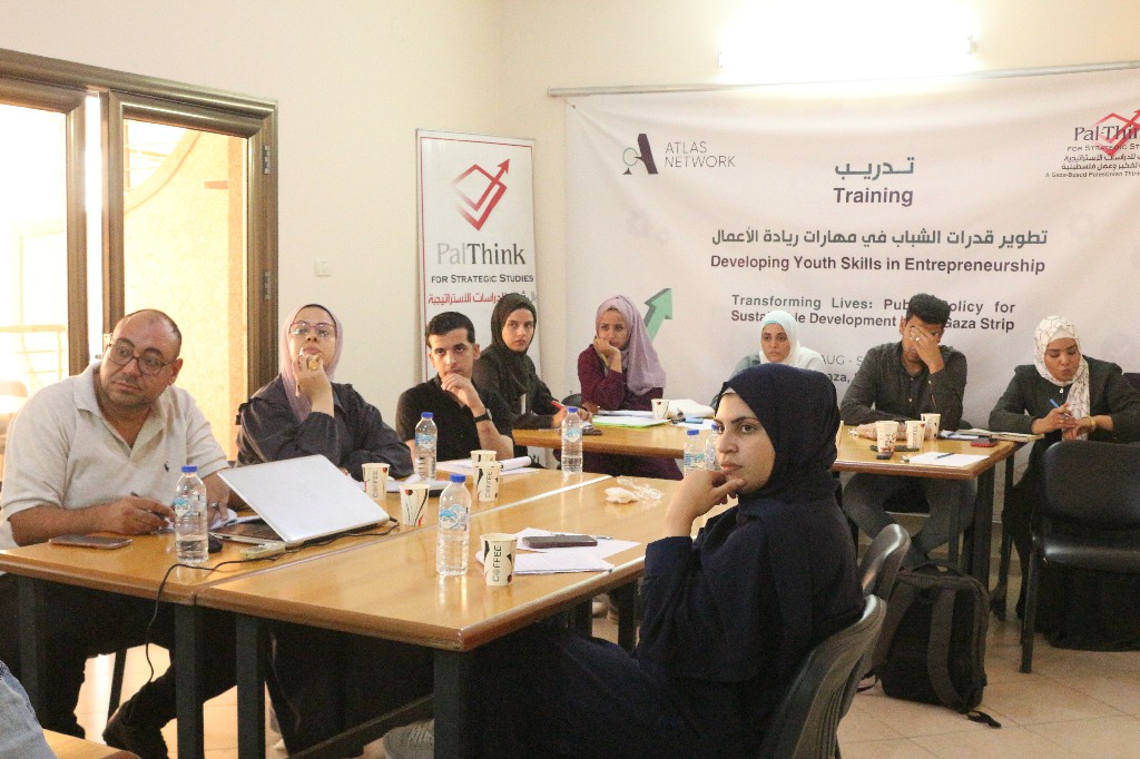 ضمن مشروع “تعزيز ريادة الأعمال للشباب الفلسطيني” اختتمت بال ثينك للدراسات الاستراتيجية بالشراكة مع شبكة أطلس، برنامج تدريبي “تطوير قدرات الشباب في مهارات ريادة الأعمال” لـ 20 مشارك/ة من مؤسسات المجتمع المدني بقطاع غزة.