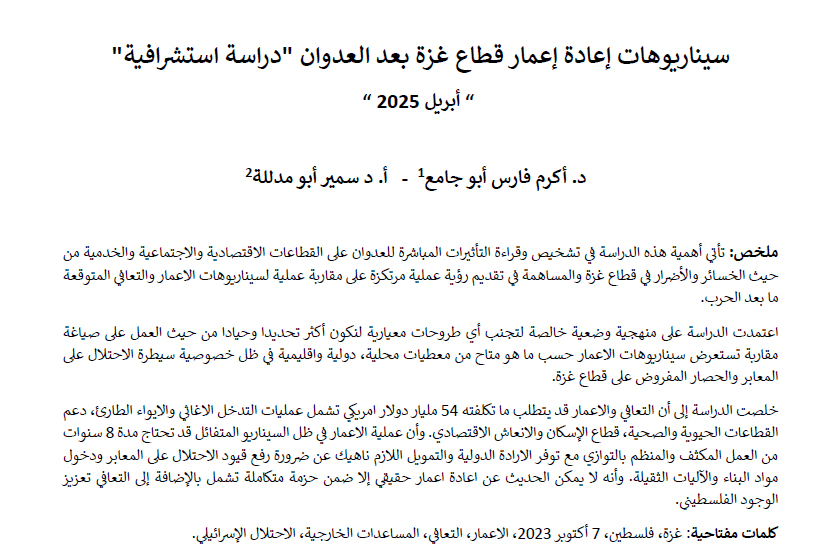 ورقة عمل: منع الأزمات في مرحلة ما بعد الحرب: هندسة الاستقرار الانتقالي في فلسطين بين الاعترافات الدولية وخطط إعمار غزة