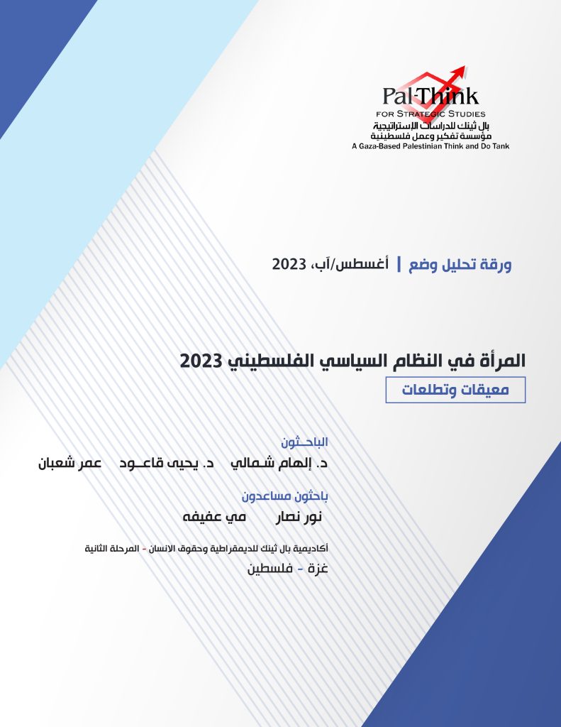 صدر حديثاً عن بال ثينك ورقة تحليل وضع| المرأة في النظام السياسي الفلسطيني 2023: معيقات وتطلعات سعت الورقة إلى قراءة وضع المرأة الفلسطينية في العام 2023، راصدة تقدُّمها، وتموْضعها، وتراجعها في السياسة والاقتصاد والاجتماع، وكذلك ألقت نظرةً فاحصة على أهمِّ التشريعات ذات الصّلة التي من المفترض أنْ تعزِّز مكانة المرأة الفلسطينية بدلًا من تراجعها، أو تموضعها، […]