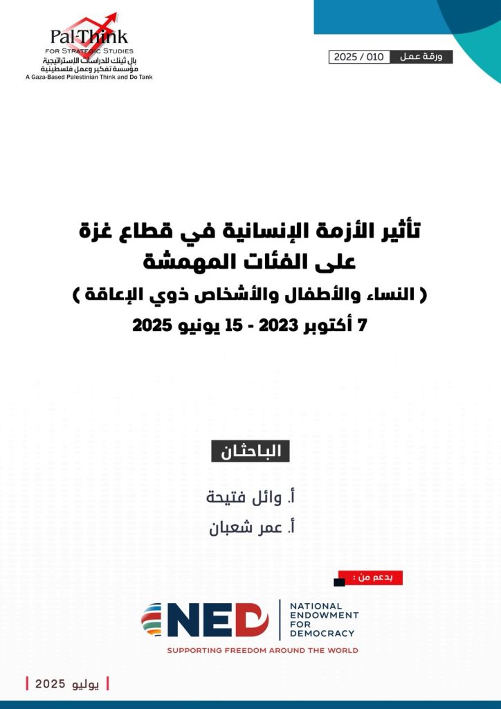 تأثير الأزمة الإنسانية في قطاع غزة على الفئات المهمشة (النساء والأطفال والأشخاص ذوي الإعاقة) – 7 أكتوبر 2023 – 15 يونيو 2025
